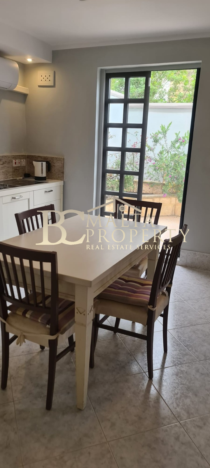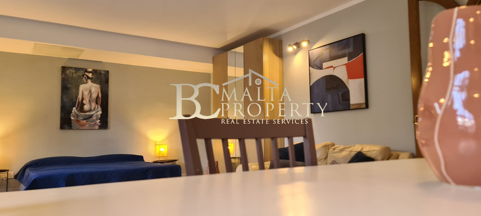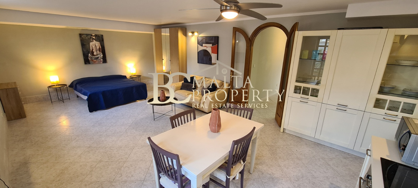 A freshly re painted and newly refurbished 55sqm bright and spacious studio apartment with a 25sqm private garden. Located in an upmarket villa area on a quiet desirable quiet street close to Spinola Bay St Julians and San Gwann on the other side.