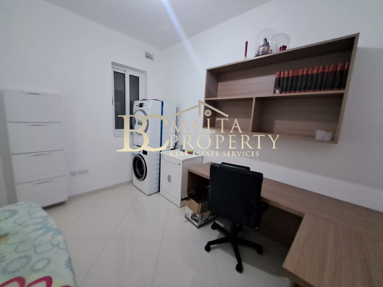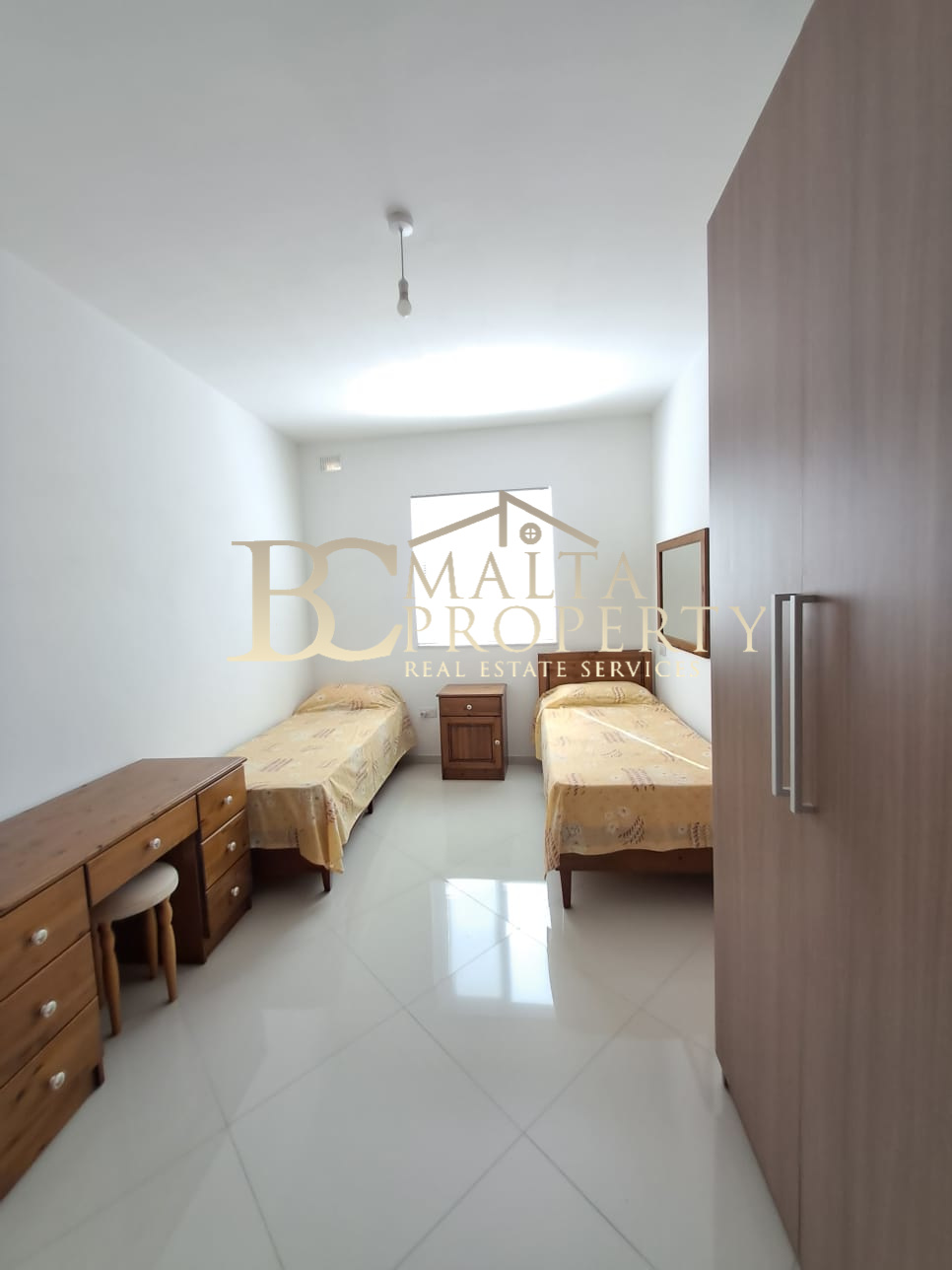 A 2nd floor 2 bedroom ( 1 double , 1 twin & another room being a study / washroom) apartment in a smart block with lift situated close to Mater Dei hospital and Birkirkara/Msida.